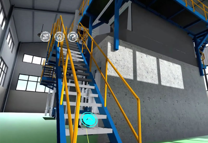 利用3D模型展示碎浆系统的整体结构、工作原理和关键部件。构建高度还原的虚拟车间环境,学员可以自由漫游。